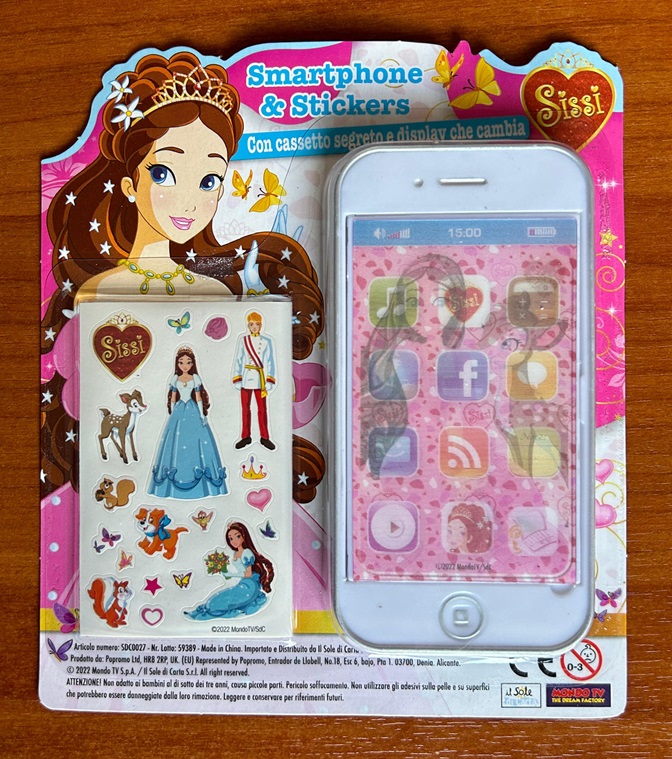 - un secondo smartphone con un cassetto segreto, un display che può cambiare (proprio come se fosse un telefono vero!) mostrandoci la Principessa e degli sticker da attaccare dove vuoi con Sissi, Franz e i suoi amici animali.